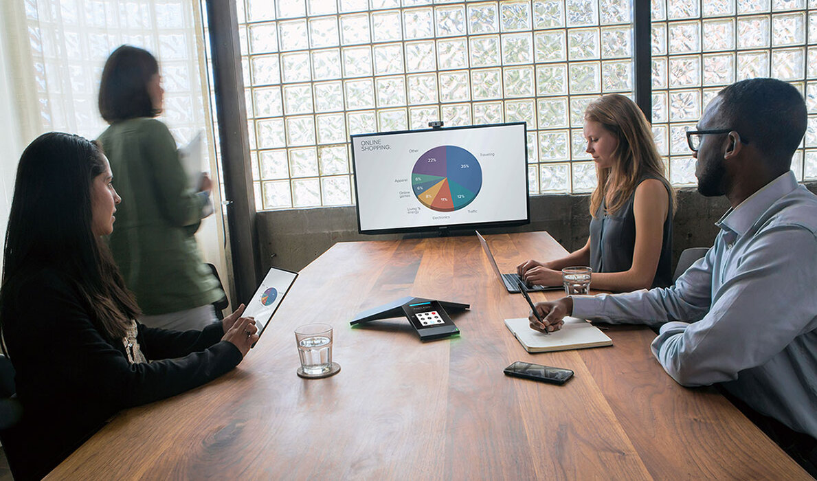 Das Poly Trio 8800 ist ein Audio-, Video- und Content Sharing-System für Arbeitsgruppen jeglicher Größe. Es lässt sich mit einer Kamera erweitern und bietet herausragende Audioqualität. Über den Farbtouchscreen lässt sich das System einfach und bequem administrieren.
