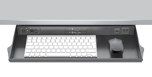 Optimal ist diese Lösung für Teams mit unterschiedlichen Geräten wie Mac, Windows oder Chromebooks, die eine versteckte und einfache Kabelführung präferieren.
