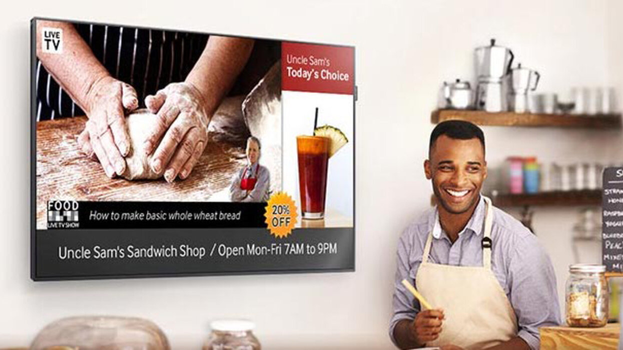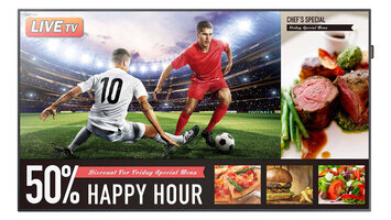 Die neue RMH-Serie von Samsung kombiniert Live-TV mit Instore-Werbung im Hoch- und Querformat. Das eingebaute WiFi ermöglicht eine einfache Kommunikation mit Routern, Netzwerken und mobilen Geräte und ermöglicht so ein einfaches Remote-Content-Management.