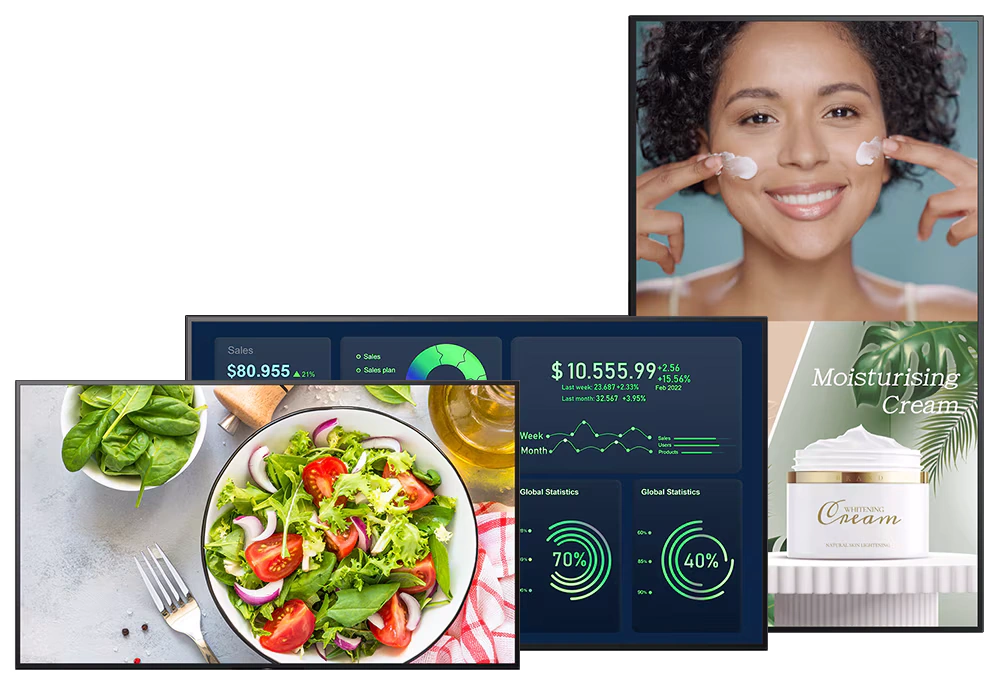 Erleben Sie gestochen scharfe Bilder und satte Farben dank der 4K-HDR-Bildqualität. Die hohe Helligkeit und der Kontrast machen sie ideal für gut beleuchtete Umgebungen, während der zuverlässige 24/7-Betrieb für den Einsatz in anspruchsvollen Umgebungen konzipiert ist. Durch einfache Anpassungsmöglichkeiten und produktivitätssteigernde Apps können Inhalte problemlos aktualisiert und geteilt werden.