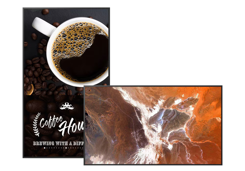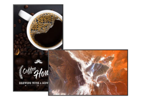 Die Displays zeichnen sich durch ein schlankes, modernes Design mit einheitlichen, schmalen Rahmen (47 mm Dicke bis 65") aus, das sich nahtlos in Unternehmens-, Bildungs- oder Retail-Umgebungen einfügt und sowohl horizontal als auch vertikal genutzt werden kann. Die Deep Black Non-Glare-Standardbeschichtung reduziert störende Reflexionen und sorgt dafür, dass Inhalte auch bei hellen Lichtverhältnissen kontrastreich und gut erkennbar bleiben, wodurch Präsentationen, Digital-Signage-Inhalte oder Meeting-Displays klar und eindrucksvoll dargestellt werden.