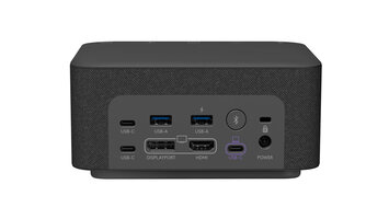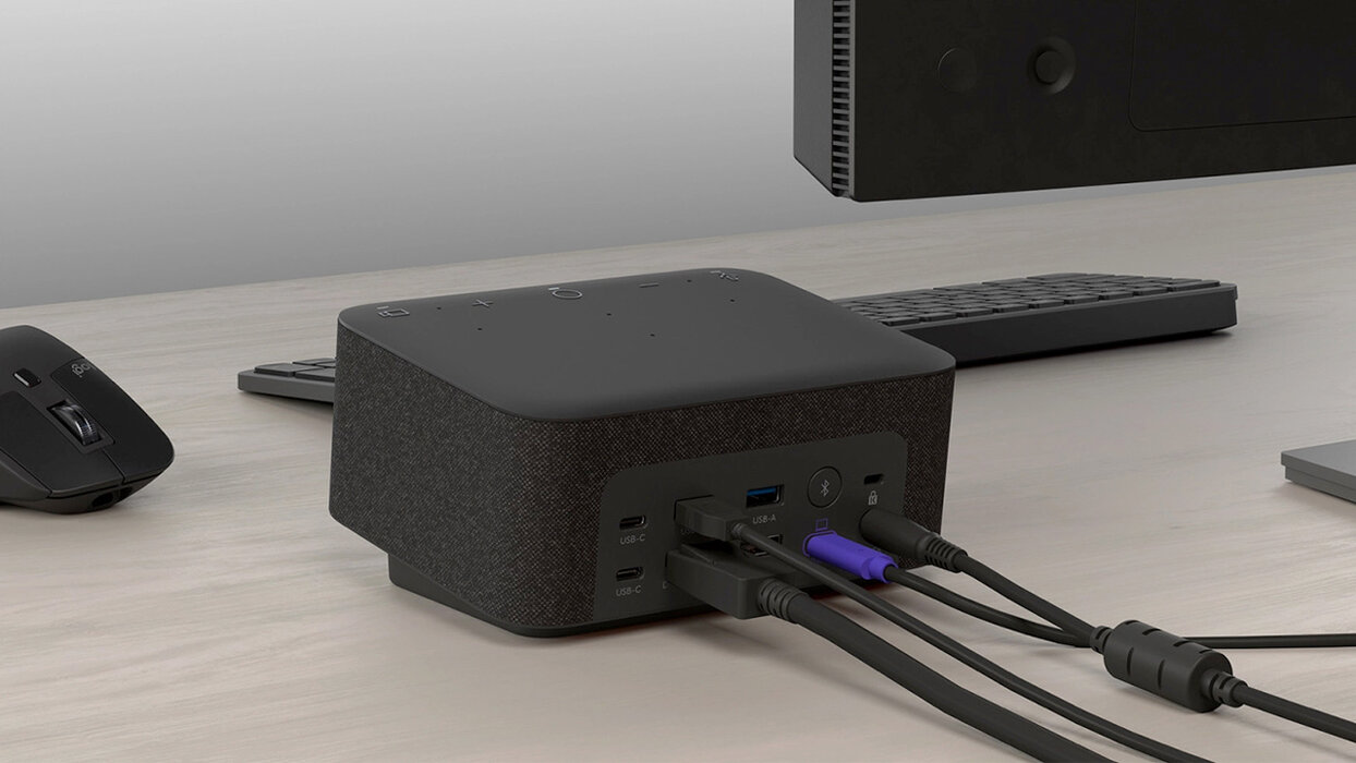 Logi Dock ist eine Dockingstation mit verschiedenen Anschlussmöglichkeiten für Ihren Laptop inklusive Lademöglichkeit, Bluetooth und die Nutzungsmöglichkeit als Lautsprecher und Mikrofon, konzipiert für das professionelle Home Office.