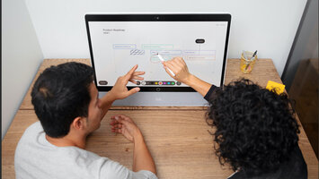 Webex Desk Pro über eine Touch-Redirect-Funktion. Diese Funktion arbeitet über das USB-C-Verbindungskabel in Verbindung mit einem HDMI-Kabel, und eignet sich für Aufgaben, wie Drag & Drop, Zeichenprogramme und Karten.