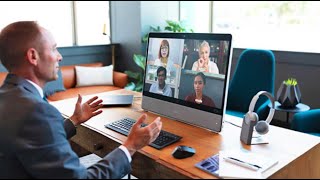 All-in-One-Gerät für erstklassige Zusammenarbeit und Produktivität, bestehend aus einem 27'' 4K-Display, einer HD-Kamera, einem überlegenen Soundsystem und einem fortschrittlichen Mikrofon-Array mit Rauschunterdrückung.