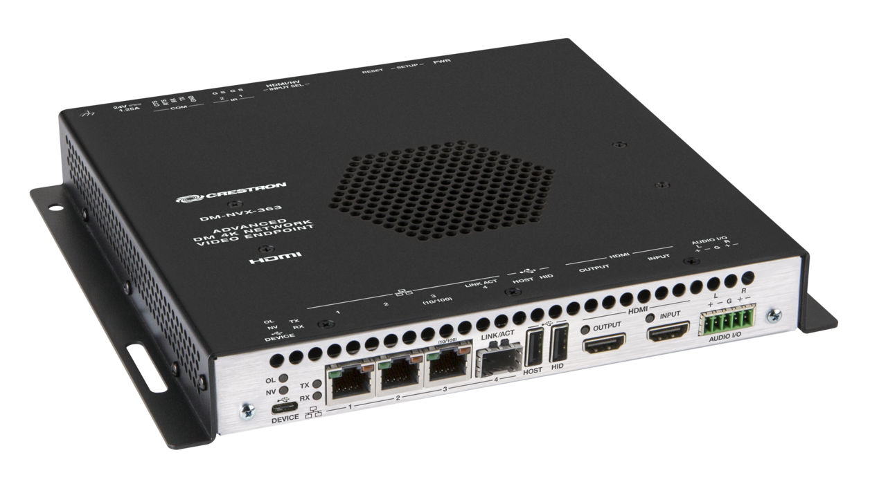 Der Crestron DM-NVX-363 ist ein zuverlässiger, hochleistungsfähiger AV-over-IP-Encoder oder -Decoder, der 4K60 4:4:4-Video über Standard-Gigabit-Ethernet ohne spürbare Latenz oder Qualitätsverluste überträgt. Ausgestattet mit HDR (High Dynamic Range) und HDCP 2.3, integrierter Skalierung und Videowandverarbeitung, bietet er eine sichere, skalierbare 4K-Signal-Routing-Lösung für unternehmens- und campusweite Content-Distributionsanwendungen. Mit Unterstützung für PoE+ und einer nahtlosen Crestron-Netzwerkintegration ist dieses Gerät ein echtes Multitalent für professionelle AV-Installationen.