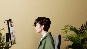 Kopfhörer, speziell konzipiert für die Verwendung am geschäftigen hybriden Arbeitsplatz. Drei Mikrofone, eine Kombination aus fortschrittlichem