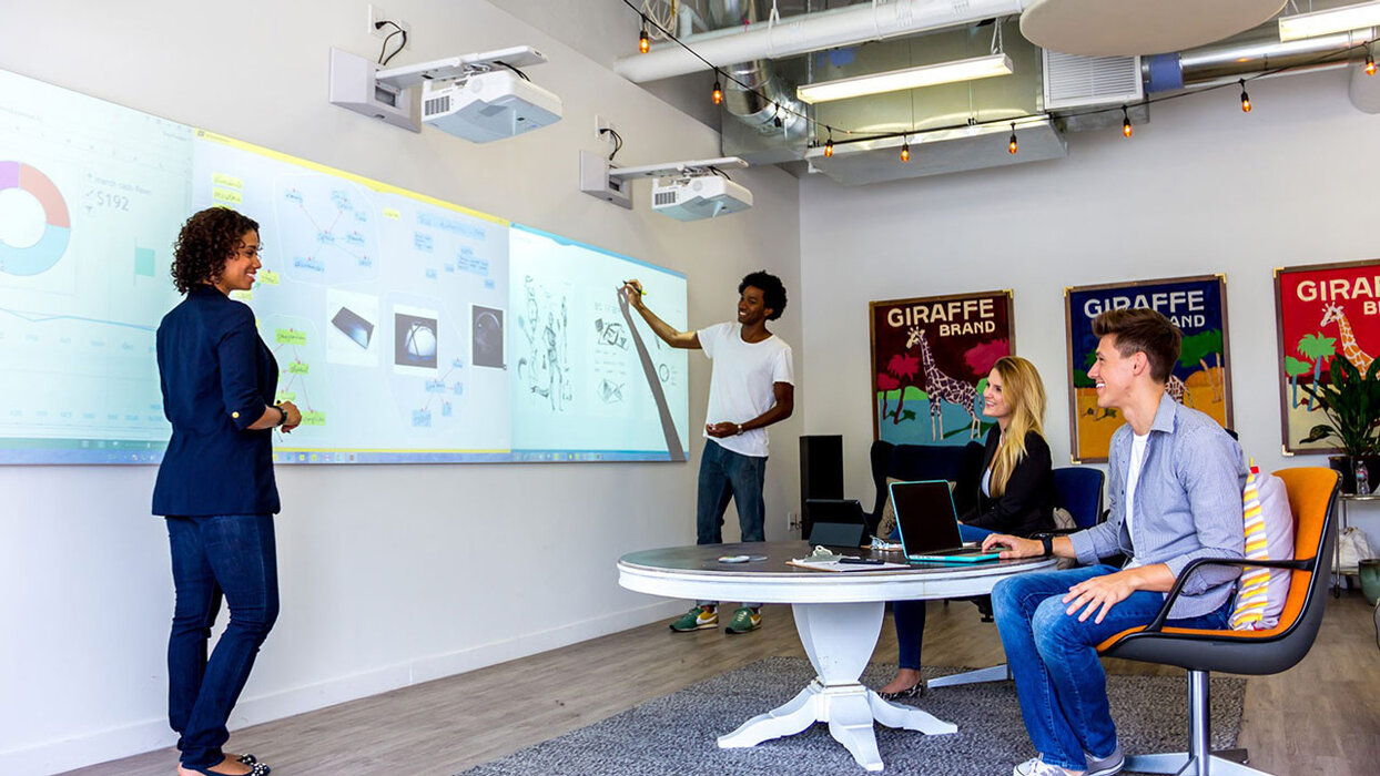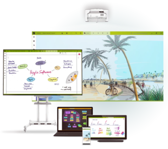 Collaboration-Applikationen besteht. Diese ermöglichen Ihnen die Gestaltung und Planung ihrer Projekte auf einer intuitiv nutzbaren und unbegrenzten Leinwand. Dabei steht Ihnen eine breite Palette an Werkzeugen zur Verfügung, mit denen Sie zeichnen, malen und designen können. Zudem ist es möglich, Inhalte von Laptops oder anderen mobilen Endgeräten anzuzeigen.