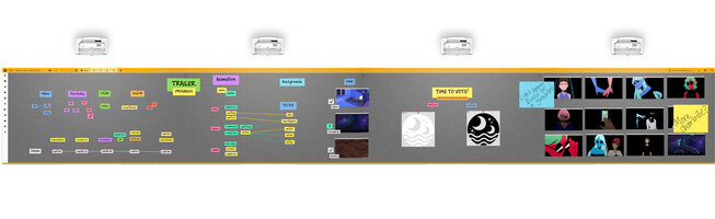 Die HoyluWall ist eine großformatige, bis zu 8 Meter große, interaktive Projektionsfläche mit nahtloser Multi-Channel-Unterstützung. Durch die flexiblen Installationsoptionen kann die HoyluWall speziell an Ihre Anforderungen angepasst werden. Ein wichtiger Bestandteil der HoyluWall ist die Hoylu