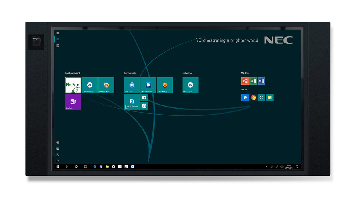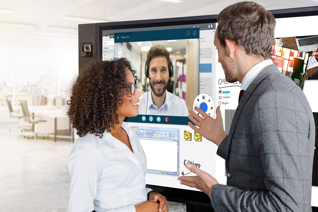 Das NEC InfinityBoard ist ein interaktives Whiteboard für die Collaboration zwischen Mitarbeitern die an unterschiedlichen Orten arbeiten. Gemeinsam können sie auf dem InfinityBoard Dokumente und Dateien bearbeiten und austauschen, während sie Videoanrufe abhalten. Praktische Tools helfen die Produktivität zu steigern und ermöglichen effektive Face-to-Face Interaktion.