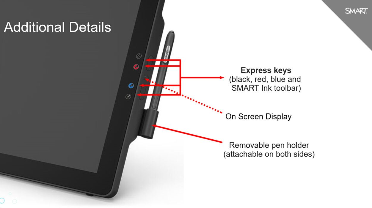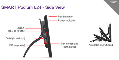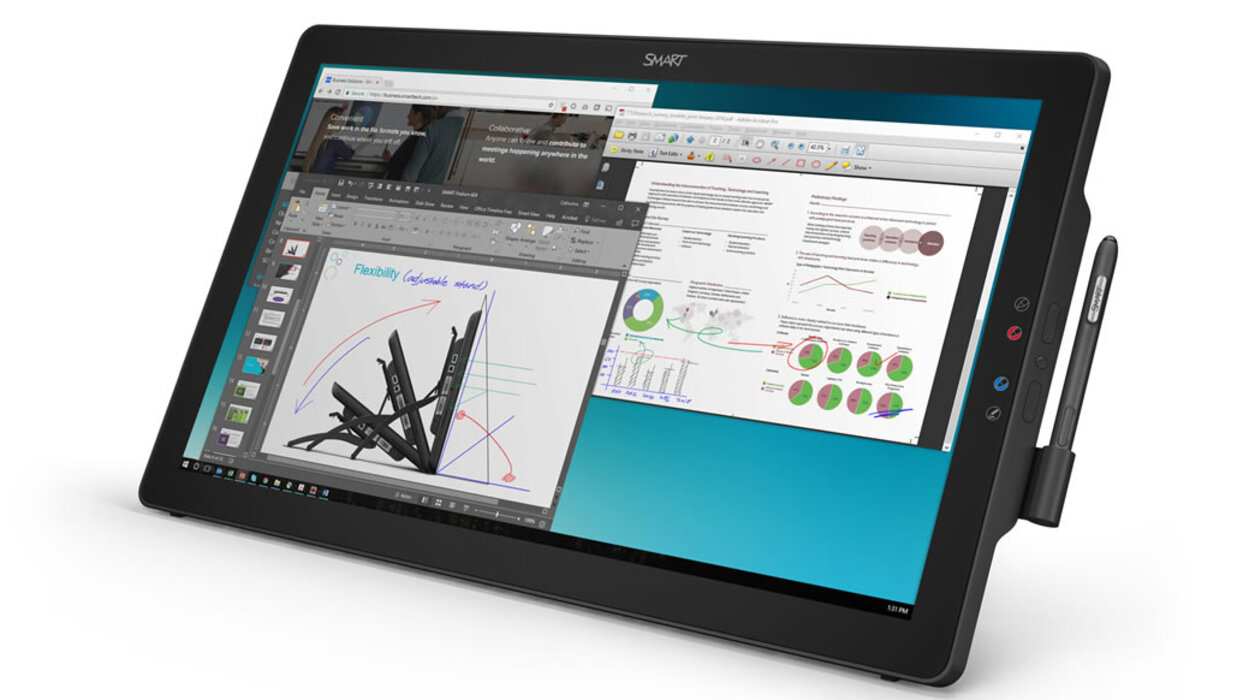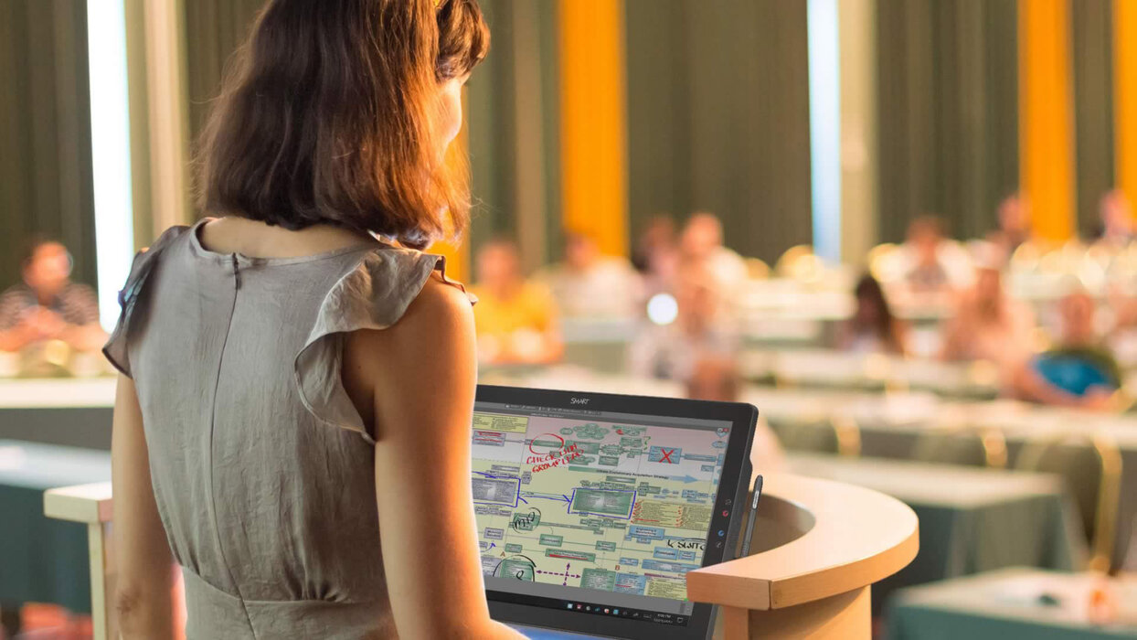 Display. Es ermöglicht Lehrern und Unternehmern beim Präsentieren Notizen oder Illustrationen mit einem kabellosen Stift auf dem 24 Zoll großen Touchscreen zu machen. Somit stehen Sie dem Publikum dauerhaft gegenüber, können aber trotzdem mit ihm interagieren und Fragen oder Anmerkungen in der Präsentation erfassen. Dadurch wird effektiver kommuniziert und Ihre Meetings sind alles in allem kollaborativer.