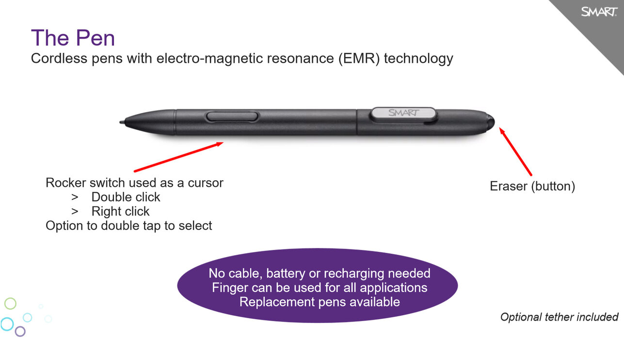 Software mit SMART ink. Moderatoren können also mit dem kabellosen, batterielosen Stift oder ihrem Finger jeden Dateityp, z.B. Websites, Videos, PDFs und