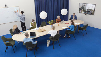 - Mithilfe des in die Kamera integrierten AI-Directors wechselt das Speaker Framing zwischen Sprecheraufnahmen, Höreraufnahmen und Übersichtsaufnahmen.