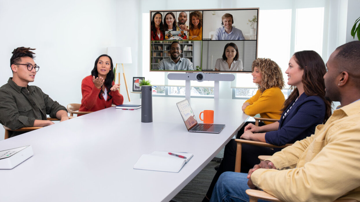 Logitech Sight ist eine KI-basierte Konferenzkamera für ein inklusive Meetingerlebnis - ganz so, als säßen Sie am selben Tisch. Die Sight hat zwei 4K Kameras, die von der Mitte Ihres Raumes aus 315° Reichweite haben. Die KI arbeitet zusammen mit der Rally Bar / Rally Bar Mini, sodass Remote Teilnehmer die Gesichter der Anwesenden sehen können, auch wenn sie sich von der Kamera abwenden. Die Beamforming Technologie der Mikrofone sorgen für ausgezeichnete Audioqualität in Ihren Meetings.