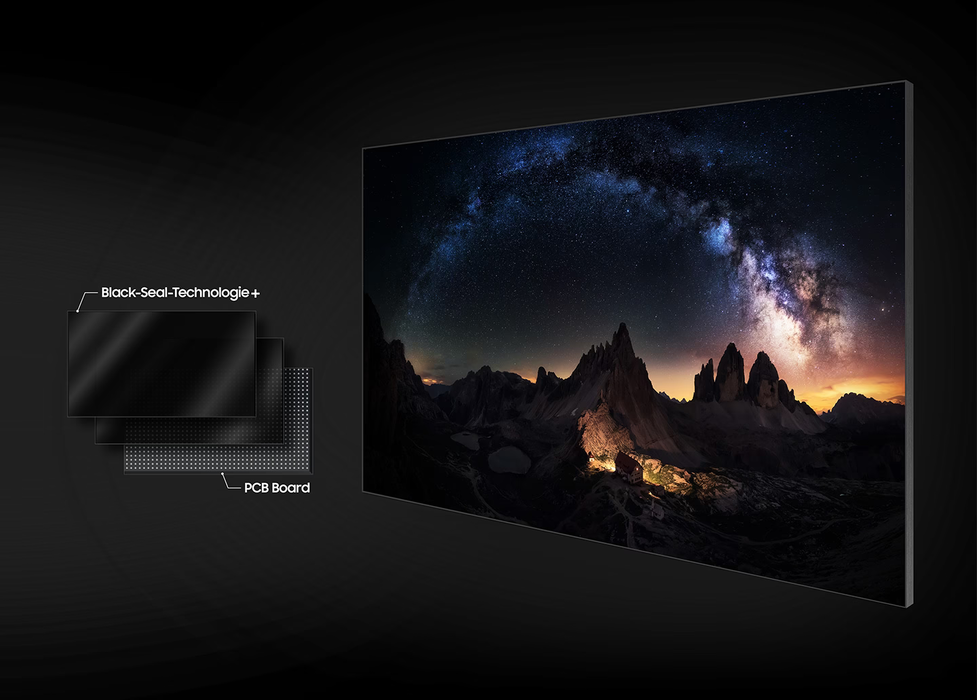 Die LED-Wand ist mit einer Reihe von Technologien ausgestattet, darunter die Black-Seal-Technologie+, Ultra-Chroma-Technologie und lineare Graustufen, die zusammen ein unvergleichliches Seherlebnis bieten. Der MICRO KI Prozessor optimiert den Kontrast und sorgt für eine gleichmäßige Bildqualität.