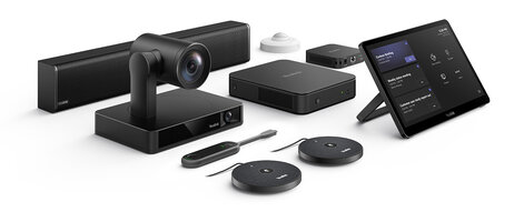 Das Yealink MVC860 ist ein Microsoft Teams Rooms Lösung für große Meetingräume. Das Raumsystem umfasst eine UVC86 intelligente Tracking-Kamera, einen MCore Pro Mini-PC, ein MTouch Plus Touchpanel, VCM35 Mikrofone, eine MSpeakerII Soundbar, einen RoomSensor und ein WPP30 4K kabelloses Präsentations-Pod.