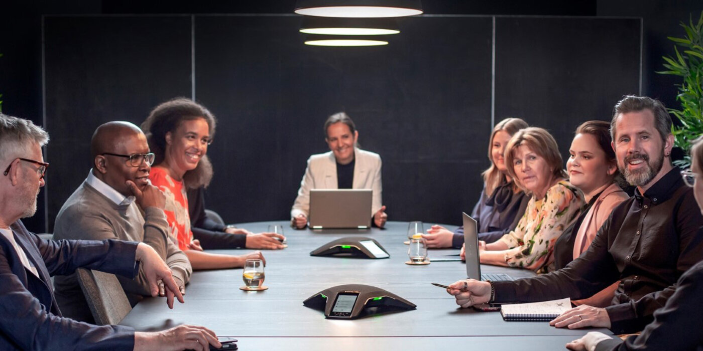 Konftel 800 ist ein Konferenztelefon für Meetings mit bis zu zwölf Teilnehmern. Es lässt sich mit dem integrierten Touchscreen oder der kostenlosen App steuern und sorgt für eine besonders gute Audioqualität mit der OmniSound Technologie.