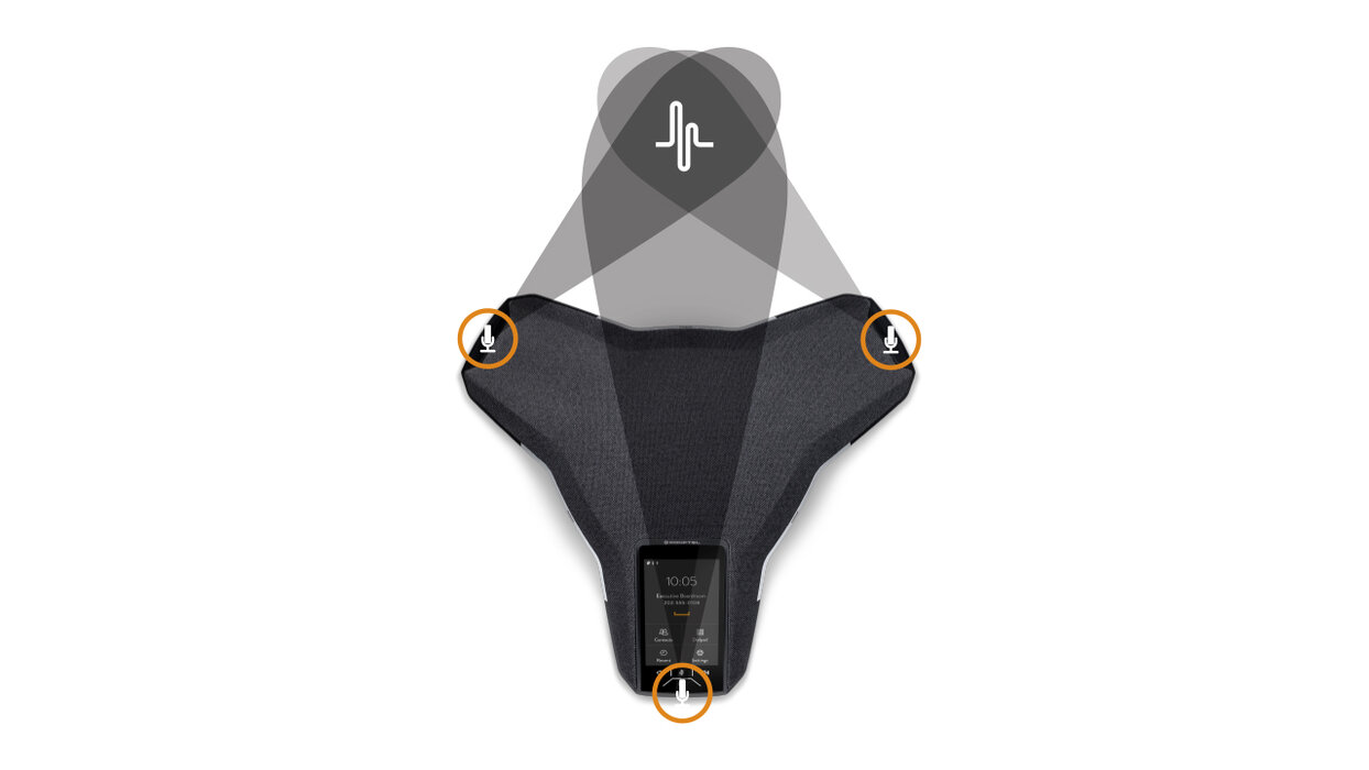Die OmniSound-Audiotechnologie bringt ein natürliches Gefühl der Präsenz in den Dialog und bietet Echo- und Geräuschunterdrückung. Zur Bedienung können Sie entweder den eingebauten Touchscreen oder die mobile App Konftel Unite verwenden. Diese unterstützt One Touch Conferencing und das Anrufen von Ihren Kontakten. Die Verbindung erfolgt über SIP, USB und Bluetooth.