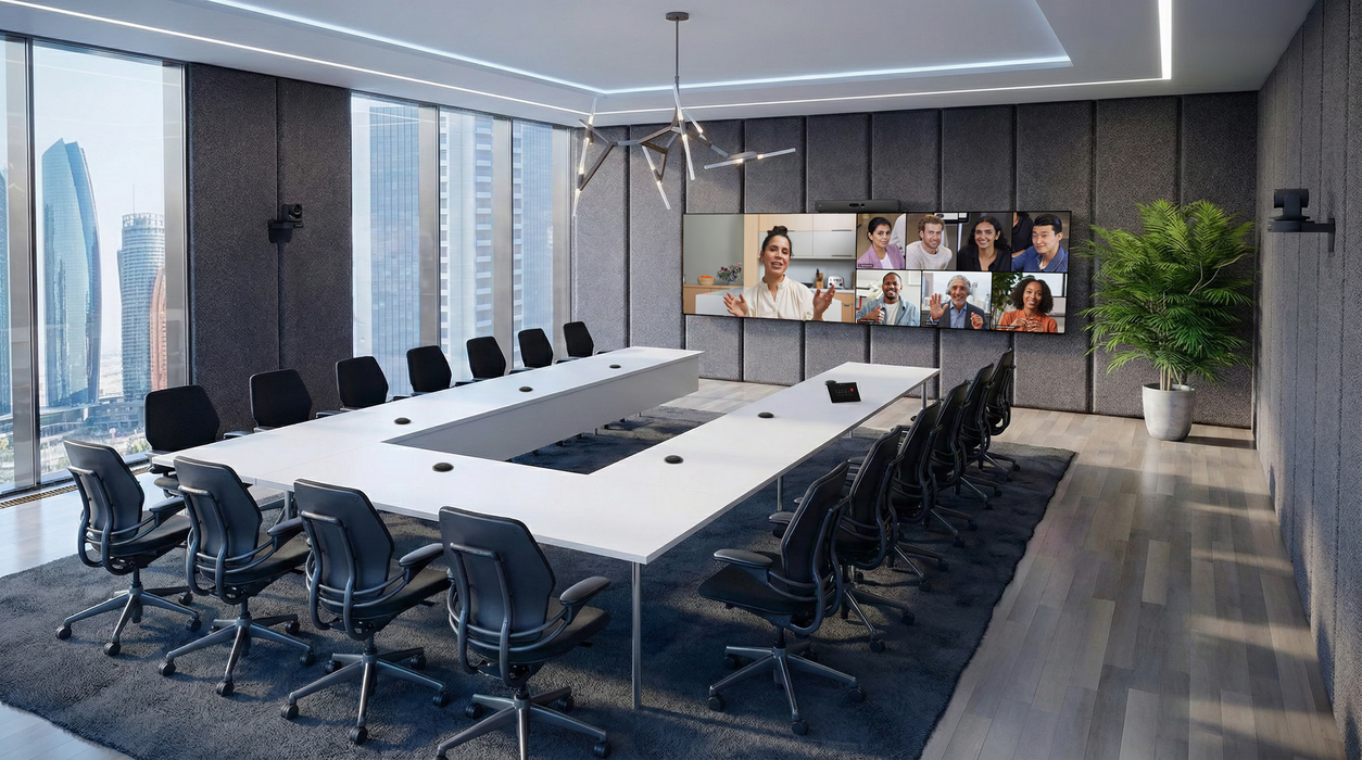 Die Lösung unterstützt KI-Funktionen, darunter intelligente Mehrkamera-Director-Steuerung, erweiterte Geräuschunterdrückung, automatisches Framing, Sprecher- und Präsentierenden-Tracking sowie virtuelle audiovisuelle Zonen, die sowohl Teilnehmende im Raum als auch Remote-User optimal einbinden.