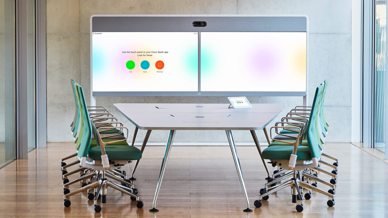 Collaboration-Systeme. Sie helfen Unternehmen, die keine seperaten Bildschirme zur Verfügung haben, einen Raum in ein benutzerfreundliches und intelligentes Meeting-Zimmer umzugestalten. Dabei ist egal ob kleine, oder große Räume. Die Webex Room Modelle kombinieren Basistechnologie für einen