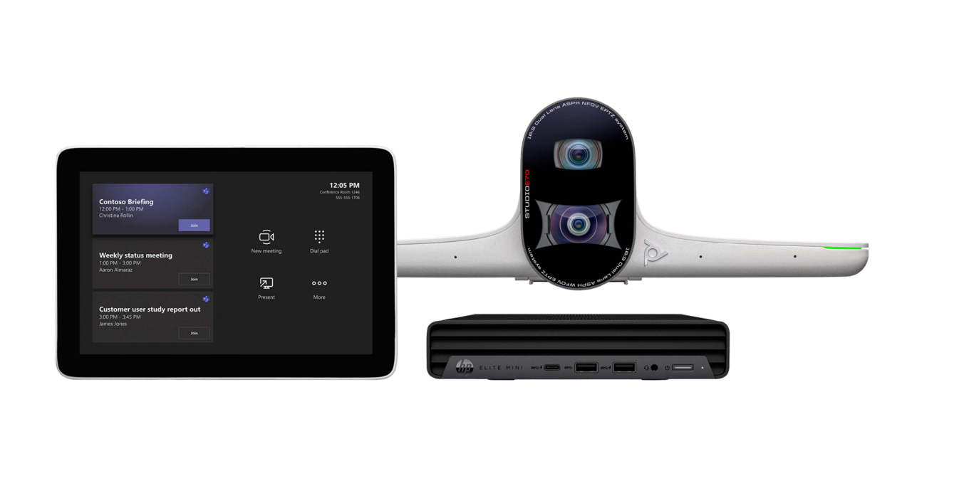 Das Poly Studio Large Room Kit kann ohne den optionalen HP Mini PC mit jeder beliebigen Plattform genutzt werden, bietet jedoch für Microsoft Teams ein besonders intuitives und produktives Erlebnis.