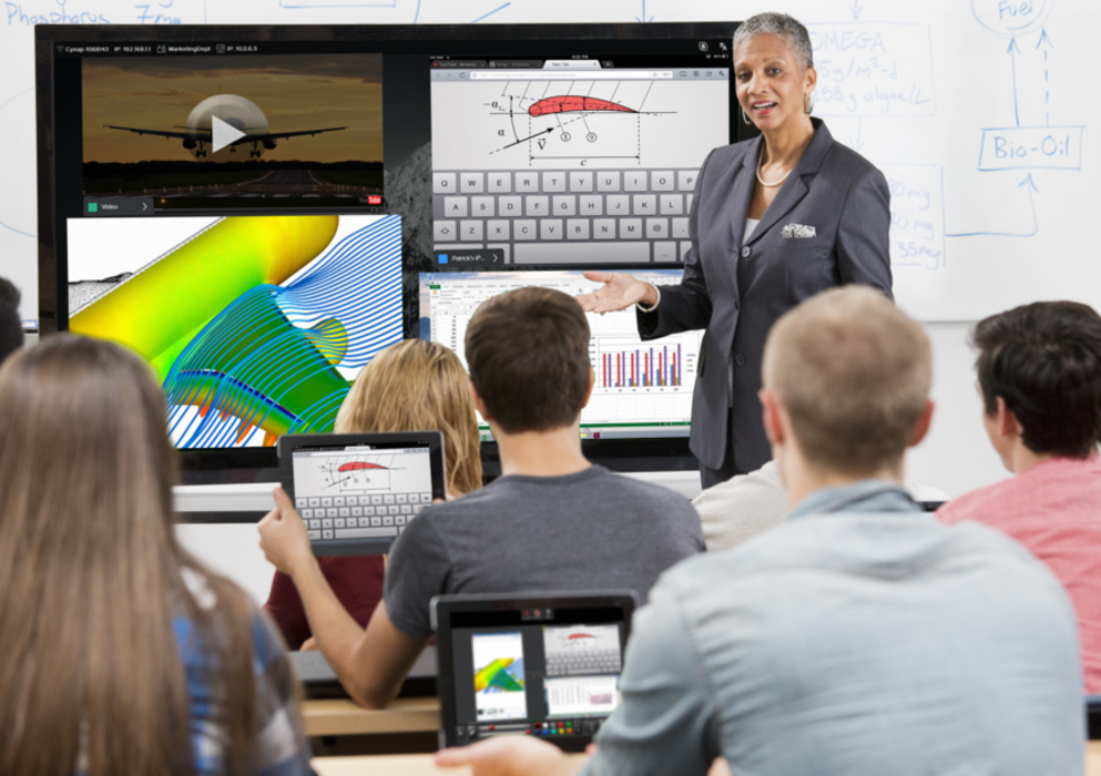 Für maximale Flexibilität können Dateien direkt aus der Cloud, dem Netzwerk, von USB oder anderen Quellen geladen und per Knopfdruck mit den Workstations geteilt werden. Ergänzend lässt sich die MATRIX-Installation durch den Cynap Pure Receiver erweitern. Dieser ermöglicht das Empfangen von Streams von einer Cynap-Einheit und erlaubt das Hinzufügen beliebig vieler zusätzlicher Bildschirme im Raum. Bei Bedarf kann die Lösung sogar raumübergreifend ausgebaut werden. Ist die Funktion „Cynap Collaboration“ aktiviert, kann der Sitzungsleiter Anmerkungen autorisieren und so Interaktive Zusammenarbeit über mehrere Displays hinweg steuern.
