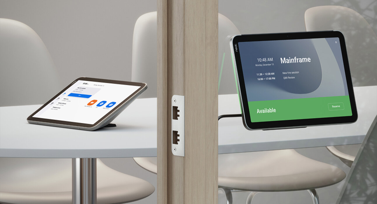 Neat Pad Pro fungiert als leistungsstarker Meeting-Controller oder als Raumbuchungs- und Verfügbarkeitsdisplay für unterschiedlichste Kollaborationsumgebungen. Das All-in-One-Gerät verfügt über einen 10-Zoll-Touchscreen mit entspiegelter Oberfläche, seidenweicher Haptik und fingerabdruckresistenter Beschichtung. Außerhalb eines Raumes montiert, zeigt es über integrierte RGB-Statusanzeigen die aktuelle Verfügbarkeit an; im Raum eingesetzt ermöglicht es die intuitive Steuerung von Meetings per Fingertipp.