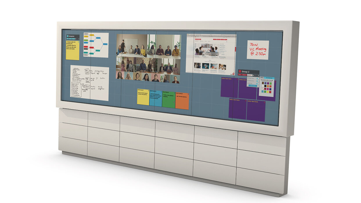 Die Interactive Videowall von DEKOM und Holzmedia ist eine, aus mehreren Displays bestehende, true Collaboration-Lösung für produktive Teamarbeit.