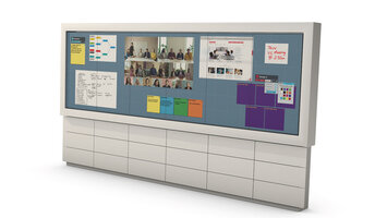 Dank des Infrarot Touchframes können mehrere Personen gleichzeitig per Multitouchbedienung an der Displaylösung arbeiten. Dabei können Sie sowohl vor Ort an der Videowall, als auch mit Ihrem Endgerät von unterschiedlichsten Standorten weltweit zusammenarbeiten. Lediglich ein Einladungscode ist nötig. Dadurch sehen alle, die mit diesem Code beitreten, was genau auf der Arbeitsfläche passiert und können dies ebenfalls aktiv mitgestalten. Mit der vorinstallierte Think Hub Software von T1V sind Ihnen Funktionen, wie E-Mail, Bilder, Videos, PDF, Notizen, Skizzen wie auch Webbrowser direkt vom Startbildschirm aus verfügbar. Die Nutzung verschiedenster gängiger Videokonferenzanbieter, wie Cisco Webex, Zoom und Skype for Business, ist von mit dem intuitiv zu bedienenden Menü aus möglich.