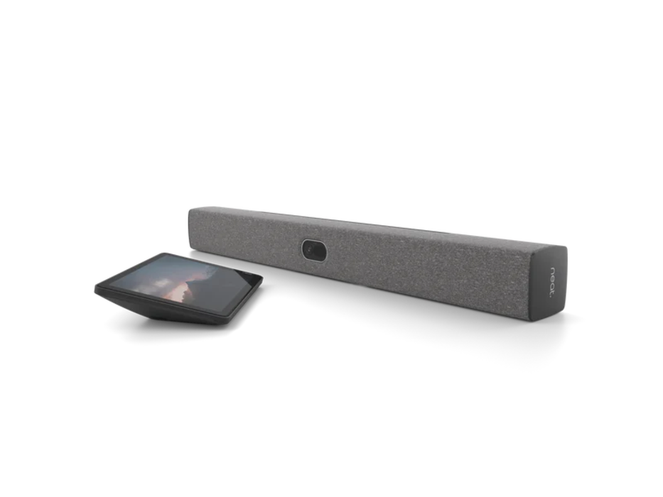 Die Neat Bar Generation 2 ist eine All-In-One-Videobar, die mit noch mehr Eleganz, schlankem Design und intuitiver Bedienung ausgestattet ist. Diese Lösung eignet sich ideal für mittelgroße Konferenzräume. Integriert mit einer KI, erfasst und lernt sie die Raumumgebung, um ein noch besseres Meetingerlebnis zu bieten. So kann sie sich dynamisch an Geräusche, Lichtbedingungen und die Anzahl der Personen im Raum anpassen. Diese Neat Lösung ist zertifiziert für Microsoft Teams und Zoom.