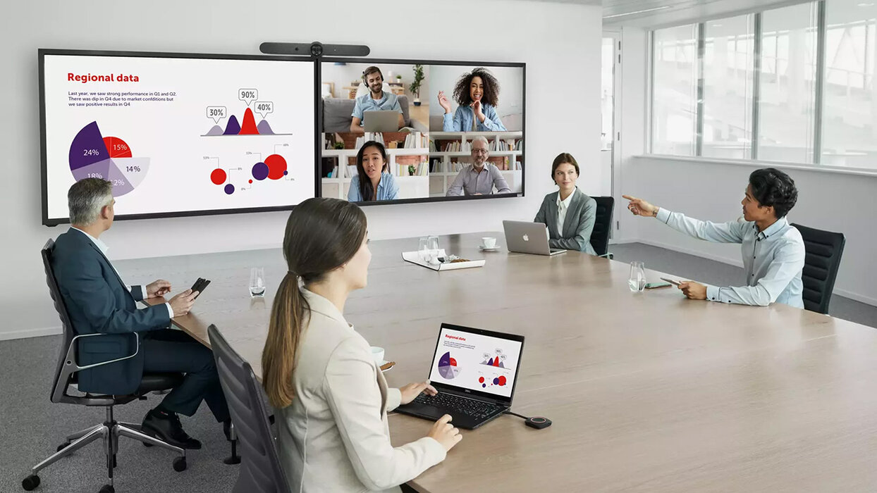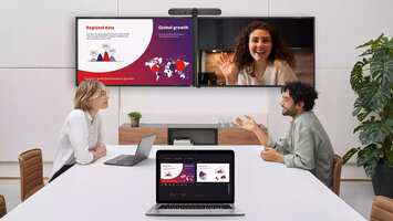 Das ClickShare CX-50 der 2. Generation ist ein drahtloses Präsentationsystem und ermöglicht hochwertige Videokonferenzen in allen repräsentativen Räumen. Das benutzerfreundliche System verbindet sich automatisch mit den Raumgeräten und unterstützt jetzt auch Doppelbildschirme.