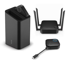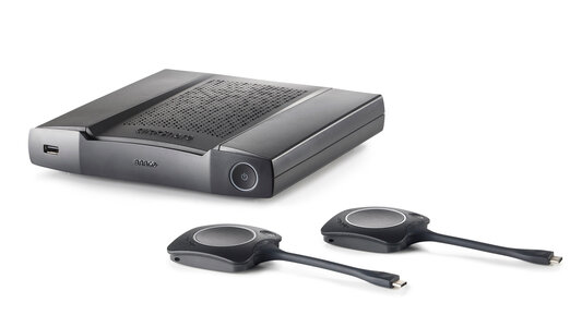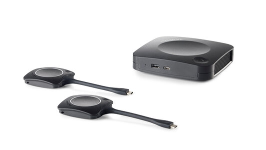Lifesize Share ist ein kabelloses Medienfreigabe-Gerät, welches Ihnen die gemeinsame Nutzung Ihrer Medien in einer Gruppe beliebiger Größe ermöglicht. Mit Lifesize Share benötigen Sie nur Ihren Internetbrowser und ein Mobilgerät mit Internetzugang und schon können Sie Ihre Inhalte auf Ihrem Konferenzraumdisplay oder Videokonferenzsystem präsentieren und mit ihnen arbeiten. Zudem können Sie Ihren Laptop über Ultraschall-Audiowellen verbinden und somit kann der Moderator in einem Meeting schnell gewechselt werden. Diese drahtlose Freigabe bezieht sich nicht nur auf Lifesize Systeme, sonder auch auf Geräte von Drittanbietern. Damit das Gerät funktionstüchtig und auf dem neusten Stand bleibt, lädt und installiert es automatische Updates ganz von allein.