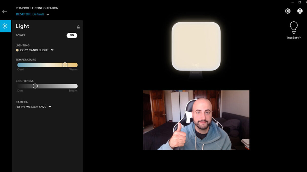 Helligkeit und Farbtemperatur lassen sich individuell auf Ihre Präferenzen anpassen – ganz einfach direkt an der Litra Glow oder per kostenloser Desktop App.